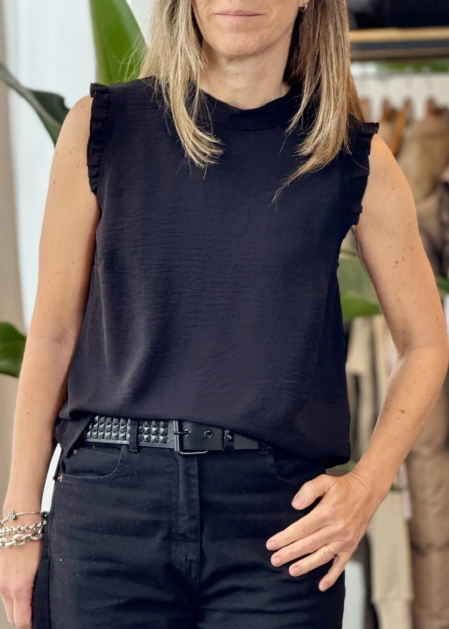 Blusa cuello alto,sin mangas con terminación de volados perfecta para cualquier ocasión.