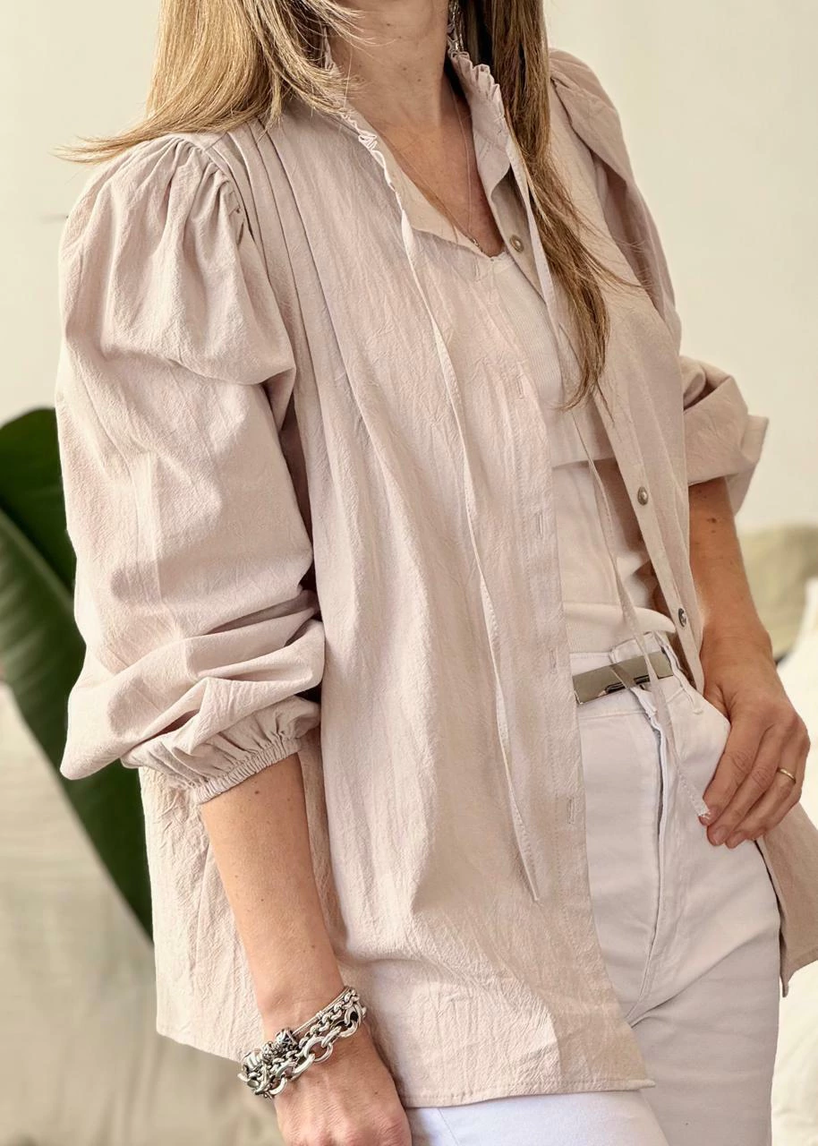Camisa Monaco modelo clásico y super distinguido con cuello alto y alforzas . Confeccionada en una tela suave y cómoda, es ideal para combinar en cualquier ocasión, desde eventos formales hasta looks casuales con un toque de distinción.