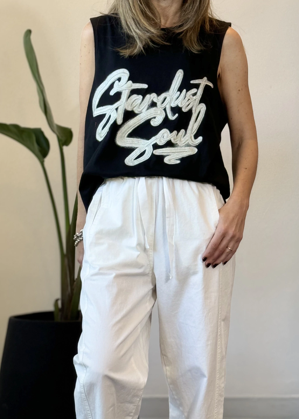 Musculosa de jersey con letras bordadas ,ideal para esos días calurosos o para usar bajo cualquier prenda . Su textura suave y elástica se adapta perfecto al cuerpo, brindando comodidad y estilo. Esta musculosa tiene toda la onda no puede faltar en tu guardarropa.