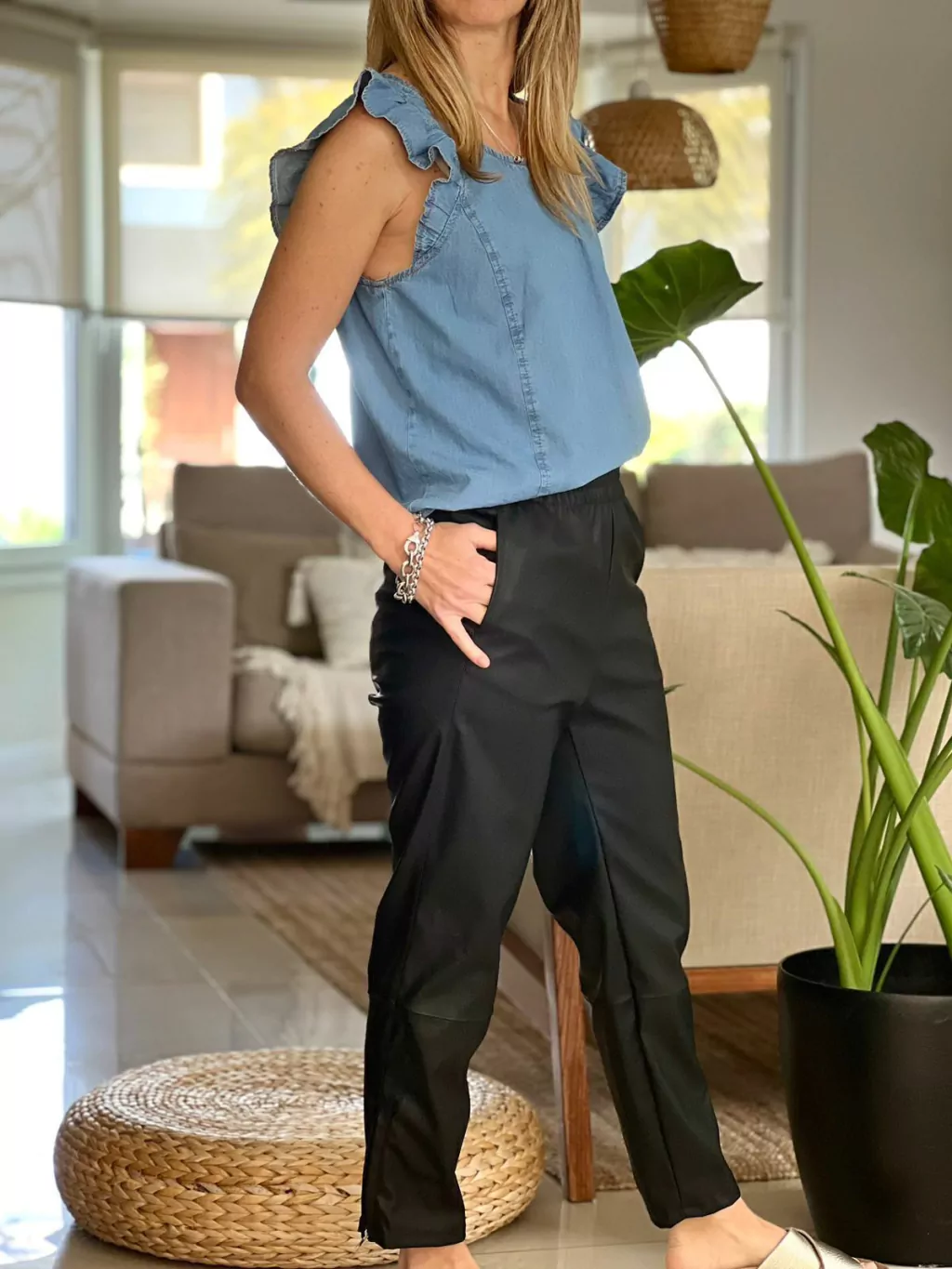 Babucha de ecocuero, esta prenda no solo ofrece una apariencia moderna, sino que también es respetuosa con el medio ambiente.