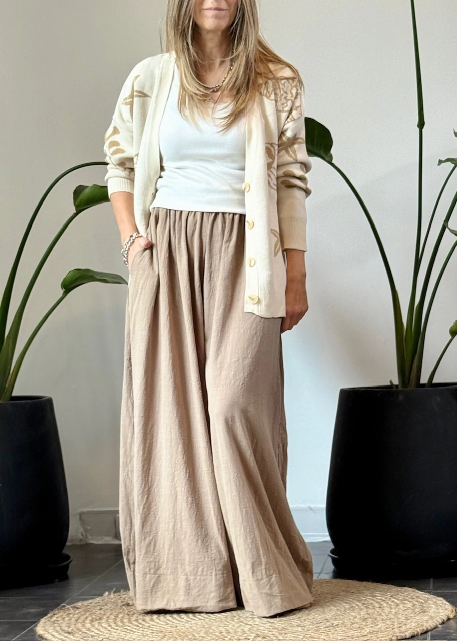 Pantalón pollera con cintura elastizada y bolsillos. Super amplio!