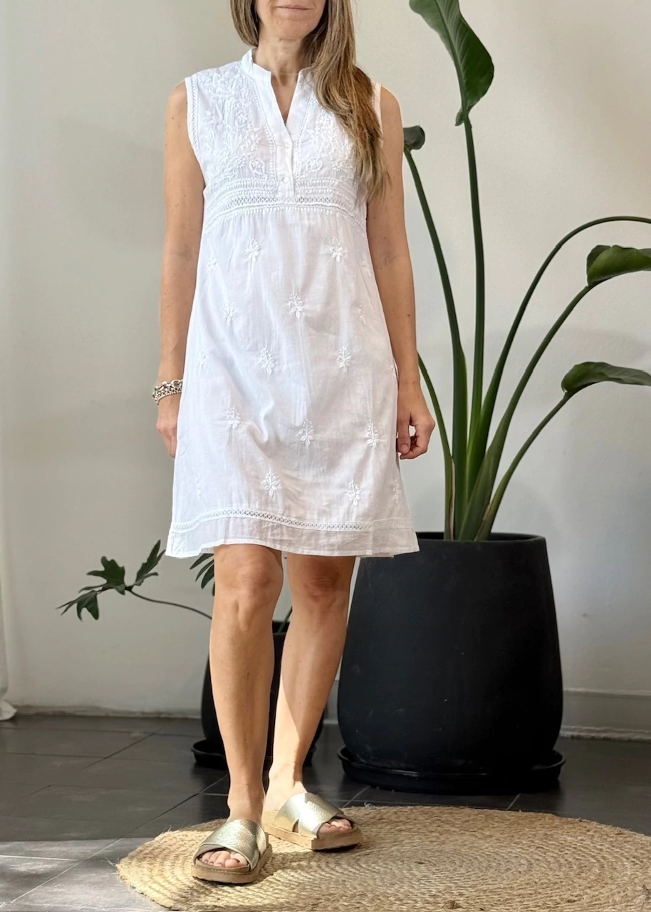 Vestido sin mangas forrado, bordado en la parte de adelante .